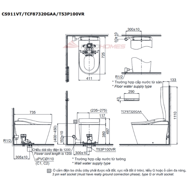 Bản vẽ kỹ thuật của bàn cầu thông minh TOTO NEOREST LS CS911VT#NW1/TCF87320GAA#NW1/T53P100VR