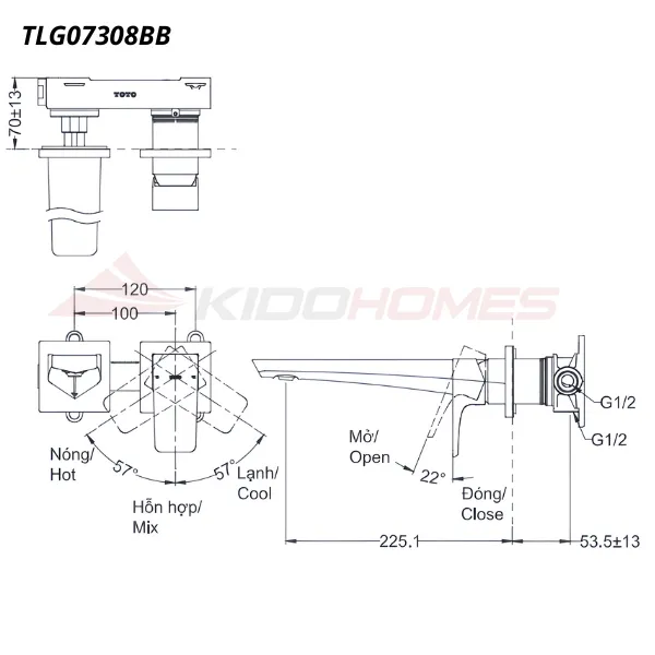 Vòi chậu âm tường nóng lạnh TOTO TLG07308BB#MBL
