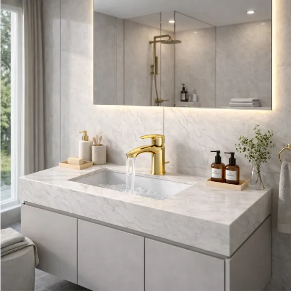 Thiết kế này đáp ứng tốt yêu cầu tiện dụng của khu vực lavabo đồng thời hỗ trợ độ bền vận hành trong dài hạn.